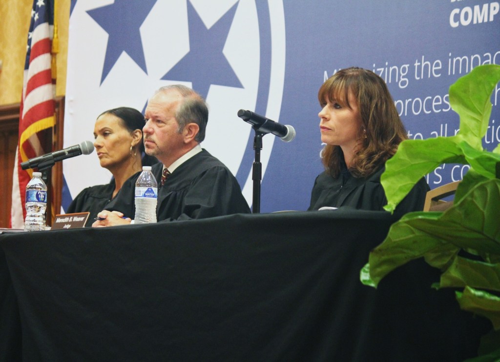 The Appeals Board held oral arguments on June 13, 2024. Left to right, they are Judge Pele Godkin, Presiding Judge Timothy Conner, and Judge Meredith Weaver.
