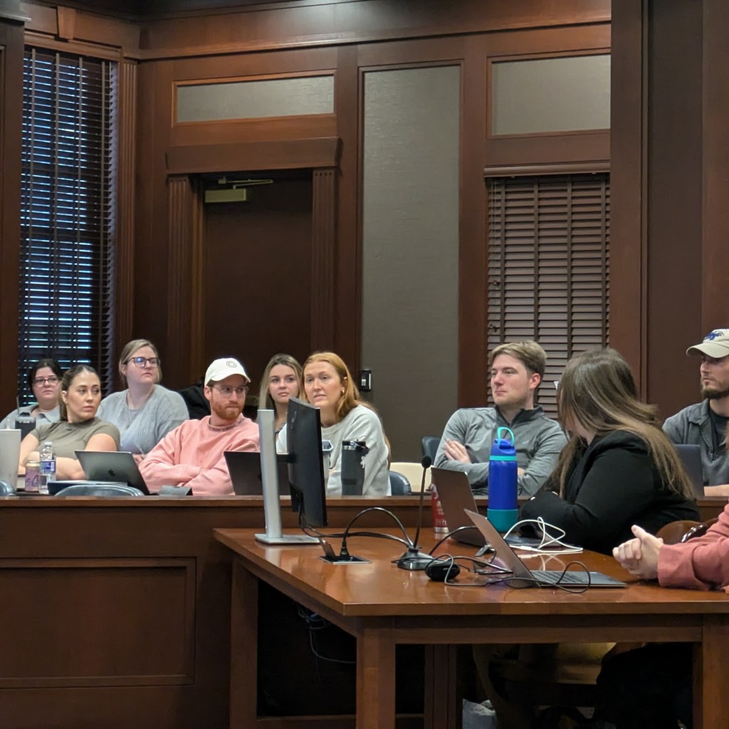 We talked about the system generally and lifecycle of a typical case, and then we prompted a discussion of some recent appellate decisions involving unusual fact patterns to generate the students’ opinions on work-relatedness. Among them were the flying cockroach case, the possum case, and the porta-potty case. The great news is, no one fell asleep! Probably because the Chief Judge also discussed football. They asked some excellent questions and made astute observations. I, for one, had fun.